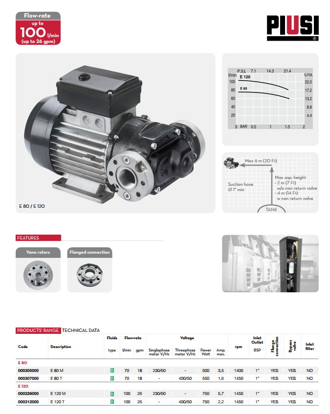 詳細說明: E80 - E120 交流柴油泵。自吸式滑片泵,內置旁通閥??煽康母叨让荛]性,適合于低溫條件下使用。體積精巧,安裝簡便,是加油機和固定式設備及其它工業(yè)用途柴油輸送的理