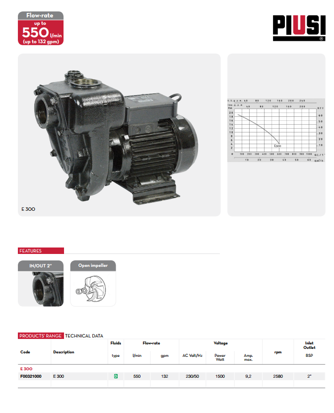 每分鐘流量可達550L/分鐘